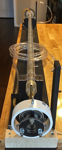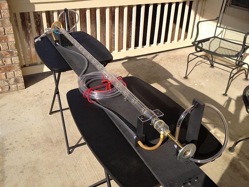 There are a number of easy options for dealing with excess hose, but I wanted to make things look right. I liked the idea of rolling the transparent hose around an acrylic cylinder, and then placing the cylinder around the laser tube - in my opinion, the resulting arrangement was appropriately 'laser-like' in appearance :-)