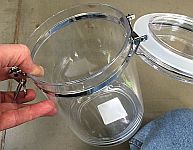 Take a mason jar and punch a small hole in the lid. Obtain a turkey baster, remove the bulb, and secure its wider end over the hole in the jar lid - use epoxy to secure and seal the turkey baster onto the lid. Any nozzle will work as long as you can slide a balloon over the end for inflating. In one of the following examples, I have one jar lid with a turkey baster nozzle, and the other lid with an old helium tank nozzle. Click on each picture to view details that should make the simple arrangment quite clear.