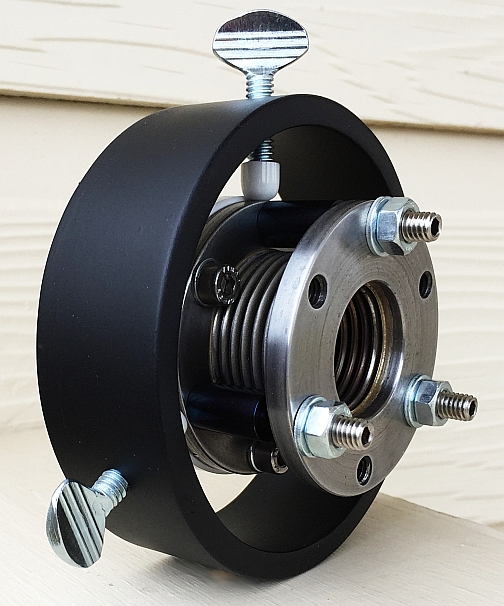A pair of washers and an O-ring will allow one to tilt the washer with the mirror, while the other washer remains stationary relative to the laser tube. In practice, a series of washers and O-rings would work best. It might be likened to a stack of tires; one on top of the other, resting flat upon the ground - the more tires there are, the larger will be the angle over which one can tilt the top tire when applying downward force at any given point along its edge. The tires can be squeezed, but not like a spring. They are limited in the degree to which they can be squeezed, so more tires will enable a larger range of movement based loosely upon the sum of their individual ranges. One must begin with mirrors that are mounted fairly straight prior to adjustment, or more washers and O-rings will be needed to accommodate the greater angle over which mirrors must be tilted in order to achieve correct alignment.