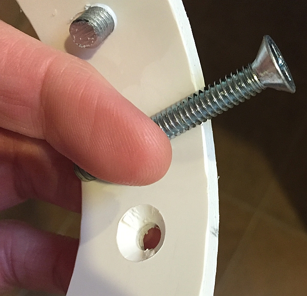 This is where you will have the opportunity to benefit from one of my mistakes. Nylon washers were the largest type of washer I could find at the time the original end pieces were constructed. I thought that by doubling them up in pairs, I could provide enough strength to withstand the exerted force required during alignment. I was wrong! So ignoring the fact that these end pieces are nylon, look at the following picture for an idea of how the end pieces are constructed.