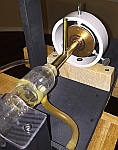 The ends of the laser tube are nothing more than sections of thin brass tubing that have been inserted into the main glass tube and secured with epoxy. In an effort to maximize the active length of the laser, I refrained from inserting the brass tubing beyond a minimum distance that I felt was necessary to be reasonably secure. However, the bellows will introduce more weight on the ends than I had originally intended. To provide additional support, I decided to make some tube-scope guides similar to those used to secure telescopes.