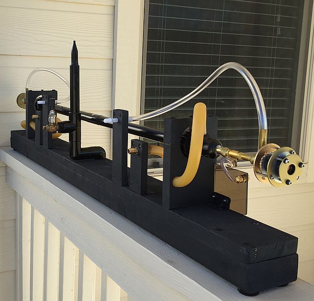 I doubt that Sears and Roebuck could manufacture something with this much quality - this is a pair of bellows that were custom built for me by Dr. Lindsay Wilson. A down-to-earth polymath, Dr. Wilson possesses extraordinary talent and ability that spans innumerable disciplines - a diverse range including but not limited to mathematics, physics, chemistry, computer graphics, machining, engineering-design and manufacture, business, and music. I am indebted to him for his invaluable help in just about every area of science, technology, and beyond.